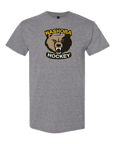 Gildan tee with the Grizzlies logo heat sealed on the front of the shirt!